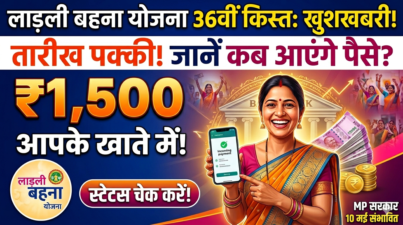 लाड़ली बहना योजना 36वीं किस्त का इंतजार कर रही महिलाओं के लिए बड़ी खबर! जानें कब आएगी मई महीने की किस्त और क्या इस बार खाते में ₹1500 आएंगे? स्टेटस चेक करने का पूरा तरीका और नई लाभार्थी सूची यहाँ देखें।