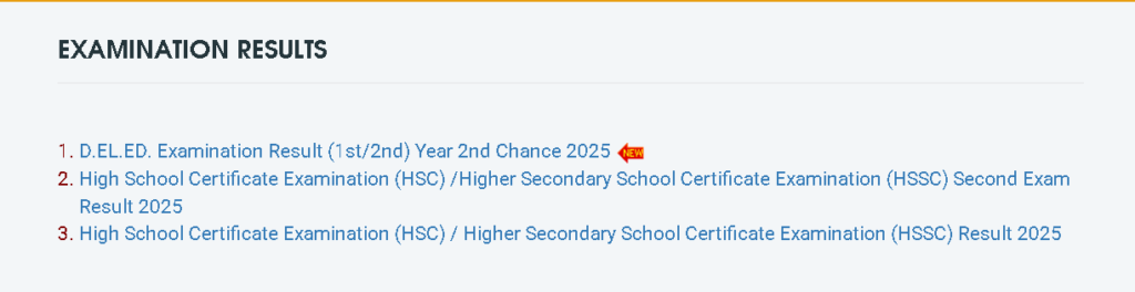 परीक्षा परिणाम पर क्लिक करने के बाद Examination Result link का page खुलेगा। यहां पर आपको High School Certificate Examination second link पर क्लिक करना है।