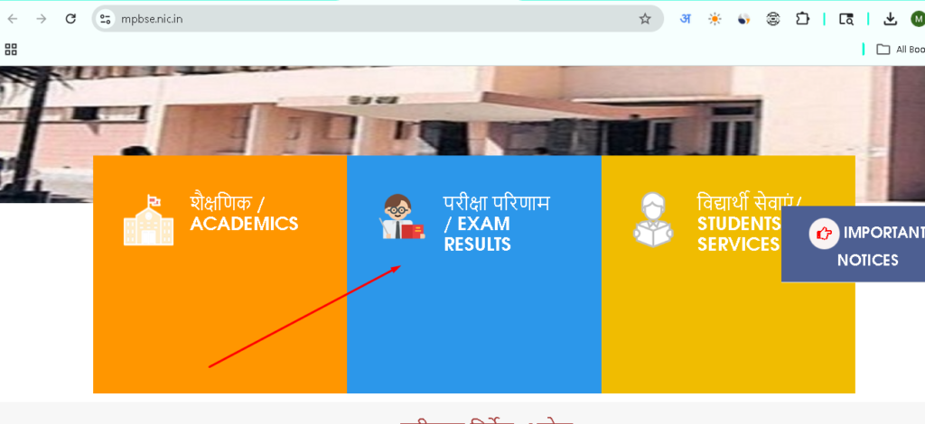 मध्य प्रदेश बोर्ड की ऑफिशियल वेबसाइट के होम पेज पर आने के बाद आपको थोड़ा पेज स्क्रॉल करना है, नीचे आना है। यहां परीक्षा परिणाम के ऑप्शन पर क्लिक करना है।