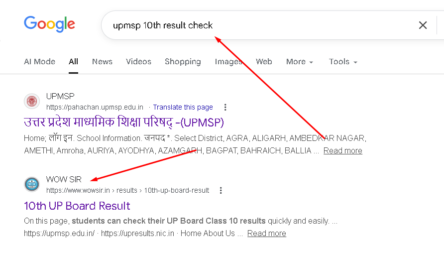 सबसे पहले आप गूगल एप्लीकेशन को ओपन करें जहां पर आने के बाद upmsp 10th result check यह लिखकर सर्च करें और wowsir.in वेबसाइट को क्लिक करके ओपन कर लें।